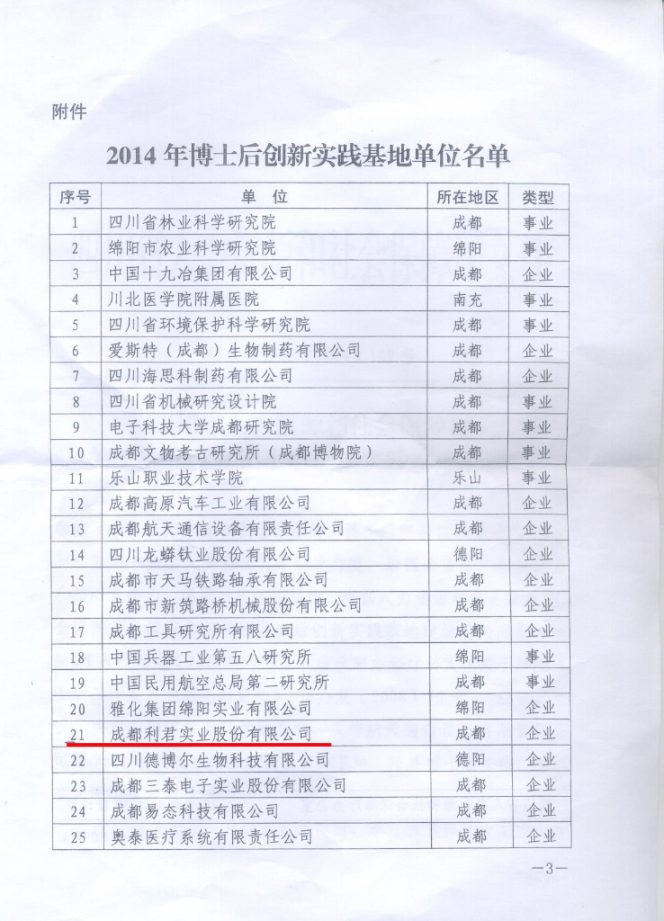 公司于2014年6月30日獲得四川省人力資源和社會保障廳批準(zhǔn)的博士后創(chuàng)新實(shí)踐基地。