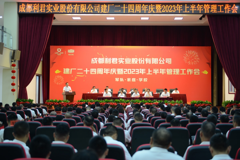 2023年7月3日,成都利君實(shí)業(yè)股份有限公司在成都市龍泉驛區(qū)成都利君科技有限責(zé)任公司員工禮堂舉行公司建廠二十四周年慶暨2023年上半年管理工作會(huì)議